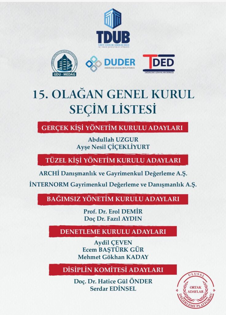 Sermaye piyasasında şeffaflığın artırılması ve gayrimenkul değerleme raporları temel alınarak oluşturulacak yatırım kararlarının etkinliğinde önemli rol oynayan değerleme raporlarını hazırlamak için kamunun doğru ve dürüst bir şekilde aydınlatılması görevi kapsamında Sermaye Piyasası Kurulu tebliği çerçevesinde sermaye piyasasında gayrimenkul değerleme faaliyetlerini yürüten üyelerimiz, ülkemiz için paha biçilmez bir hizmet sunmaktadır.